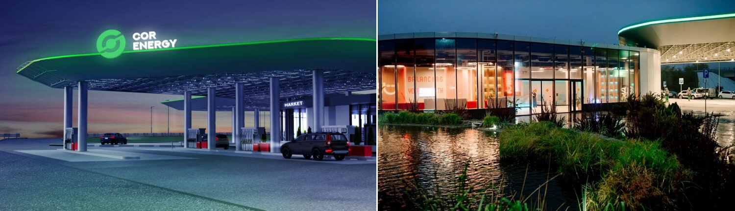Высокий уровень комфорта, современный дизайн с мягкой геометрией, натуральными текстурами и материалами, живые растения, встроенные "садовые острова", уютная территория с фонтанами, приятная качественная музыка и яркие световые решения, вкусные блюда и ароматный кофе – все это создает непревзойденную атмосферу для отдыха и перезагрузки в пути на обновленной трассе Киев-Чернигов в первой сверхсовременной АЗС COR-ENERGY в Броварском районе Киевской области.