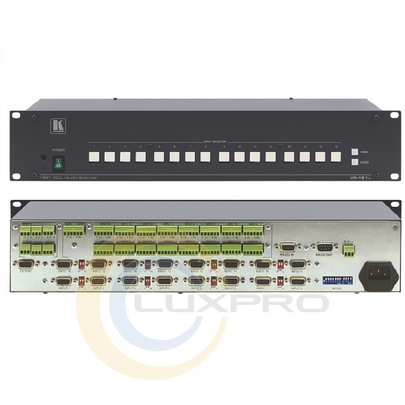 VP-161xl - высококачественный коммутатор 16:1 для сигнала VGA, а также балансного стереофонического аудиосигнала. Широкая полоса пропускания - 500 МГц (-3 дБ). Совместимость с HDTV. Число входов увеличивается последовательным включением нескольких коммутаторов.