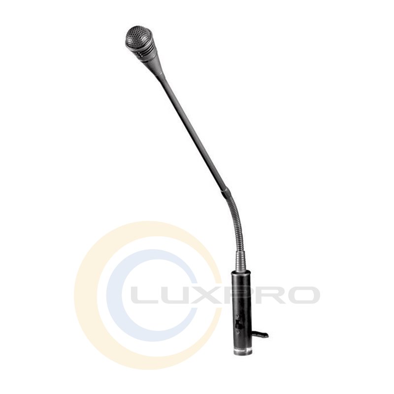 Микрофон на изогнутой стойке представляет собой элегантный высококачественный однонаправленный конденсаторный микрофон, предназначенный главным образом для объявлений в системе оповещения. Гибкая стойка имеет винтовое соединение, а микрофон выпускается с резьбовым адаптером (3/8", 1/2" и 5/8") для установки на напольную стойку, кафедру, панель или поверхность стола.