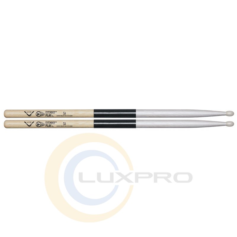 Барабанные палочки VEP5AN Extended Play™ Series 5AN отличающиеся двумя характерными особенностями, помогающими увеличить срок их службы и защищающими их от изнашивания и поломок. Первая особенность - специальное прочное покрытие жемчужного цвета, защищающее наконечник и конус палочки и предотвращающее преждевременное расщепление и появление трещин. Вторая - это эксклюзивная защитная наклейка Stick Shield™ шириной 3", расположенная в области, используемой при игре римшотами. Stick Shield™ высокоустойчива к ударам и в 8 раз прочнее на разрыв чем сталь. Палочки Extended Play™ отличаются характерным для Vater оптимальным балансом и ощущениями при игре, но при этом невероятно прочные и способны выдержать даже самую агрессивную манеру игры.