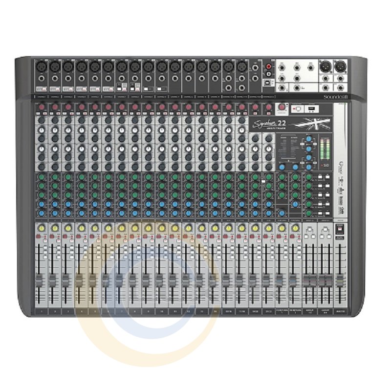 Всего в микшерном пульте Signature 22 MTK 22 канала, из них 16 моно каналов. Каждый оснащен микрофонным XLR/¼ входом и имеет предусилитель «Ghost mic. Preamps». Также с 1 по 8 канал есть лимитер от «DBX». На каждом канале есть ассиметричный эквалайзер «Sapphyre» и 100 миллиметровые фейдэры, что позволяет очень точно настроить частотные характеристики подключенного устройства. На моно каналах эквалайзер с четырьмя регулировками частоты: низкой и высокой, а также «нижней середины» и «высокой середины» (с дополнительным фильтром).
