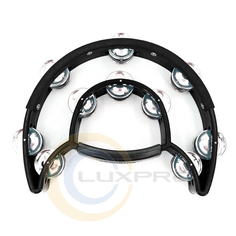 Тамбурин полукруглый, двойной, c резиновыми вставками, цвет: черный.