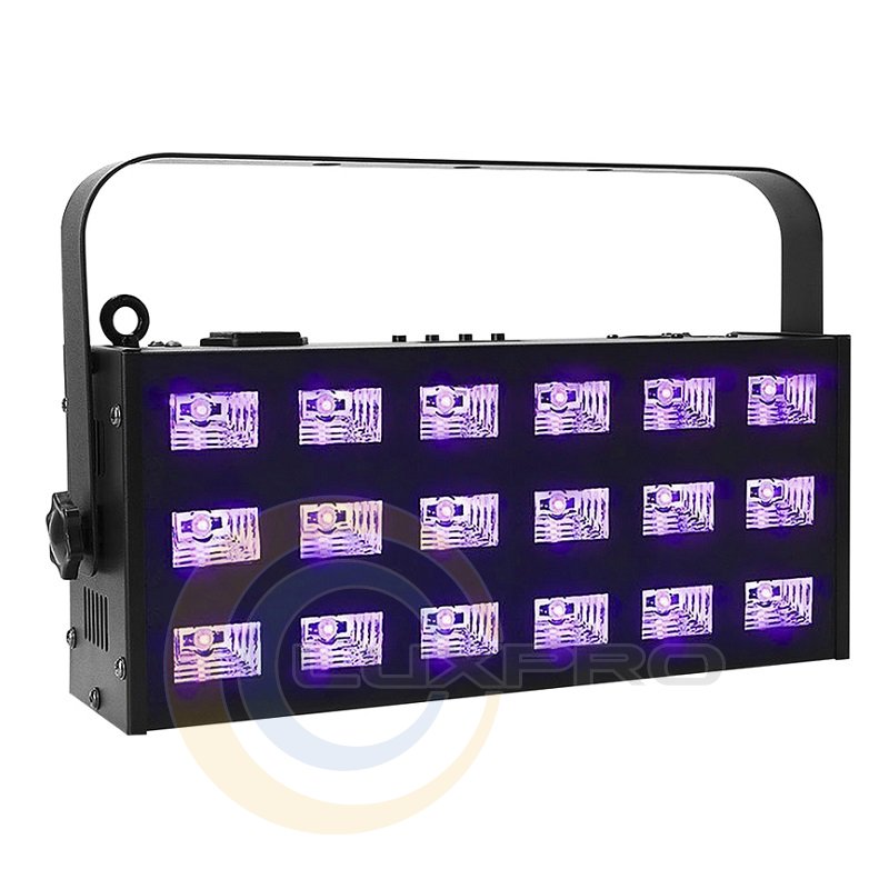 Светодиодный LED прибор LEDUV DMX18*3W - это полноценный прибор на светодиодах для создания эффекта ультрафиолетового свечения. Управление осуществляется в режимах: статика, электронный димер, строб. Устанавливается в качестве подсветки помещений кафе, баров, ресторанов, ночных клубов а также для домашнего использования.