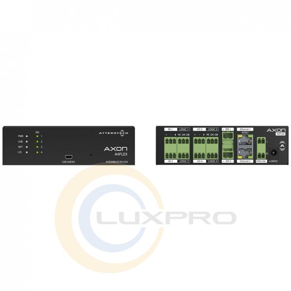 A4FLEX - трансляционный модуль для подключения микрофона/линии в сетевых AVC-системах AES67. С четырьмя микрофонно/линейными входами (два из которых являются гибкими входами/ выходами и могут быть выходами), аудио и управляющими интерфейсами USB и AES67, логическими входами и выходами и двухканальным усилителем мощности, A4FLEX одинаково подходит как сердце ограниченного пространства, небольшого конференц-зала или расширения входа/выхода для широкого спектра платформ DSP. A4FLEX может быть ключевой частью систем конференций и презентаций в корпоративных залах, аудиториях высших учебных заведений, гостиничных и судебных залах.