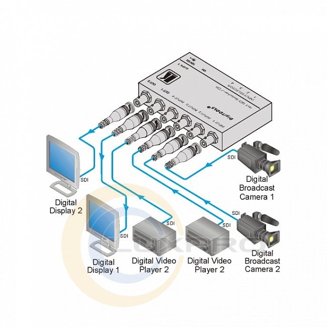 Любой из форматов сигнала видео (4fsc PAL, 4fsc NTSC, компонентный 4:2:2, широкоформатный 16:9) распознается автоматически. Устройство позволяет работать с 10-битовыми и 8-битовыми сигналами видео, автоматически распознавая длину слова. Два синхронных выхода позволяют использовать это прибор как коммутатор 4:1 и как усилитель-распределитель 1:2.Kramer 6241 относится к семейству DigiTOOLS - группе высококачественных и компактных приборов с оптимальным соотношением «цена-качество» и широким спектром применения.