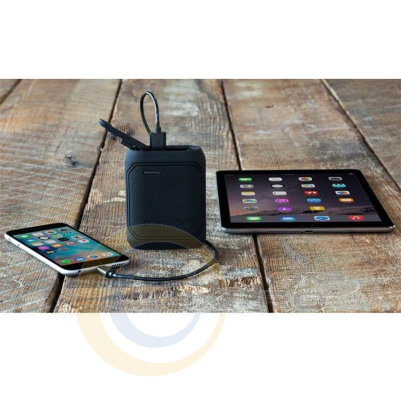 Мощный аккумулятор Survivor Power Bank обеспечивает зарядную емкость 10 050 мАч, рассчитанный на 4 полных перезарядки iPhone или Samsung или полную зарядку iPad или планшета. Светодиодный индикатор уровня заряда показывает, когда аккумулятор полностью заряжен, а яркий встроенный белый светодиод обеспечивает аварийный/резервный фонарик, когда он вам нужен.