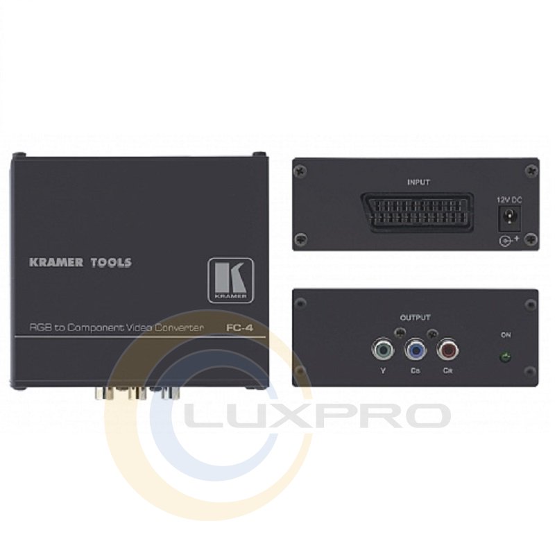 Прибор дает возможность использовать для отображения видеосигнала RGB плазменные мониторы или другие устройства с компонентным видеовходом. FC-4 выполнен в корпусе Kramer TOOLS и питается постоянным напряжением 12 В. Модель для Европы, в США не продается.