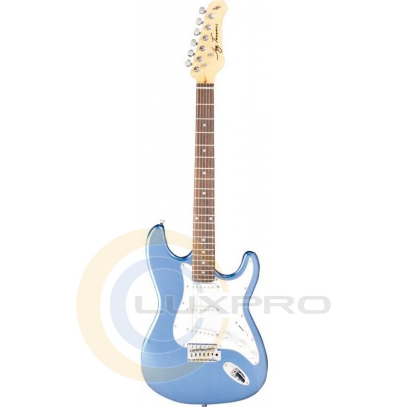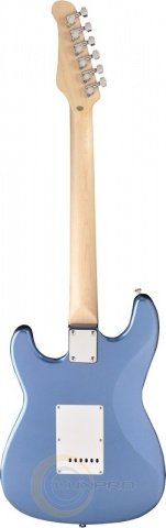 Электрогитара типа Strat, цельный корпус, гриф - клен с палисандровой накладкой, 3 датчика типа сингл, 5-позиционный переключатель, тремоло, белый пикгард.