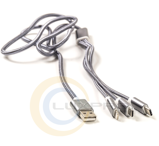 Кабель 2.1A 3-в-1 USB AM - Type-C/Lightning/Micro, 1.2м