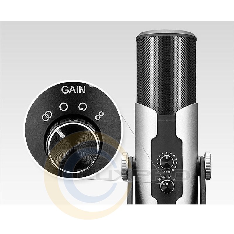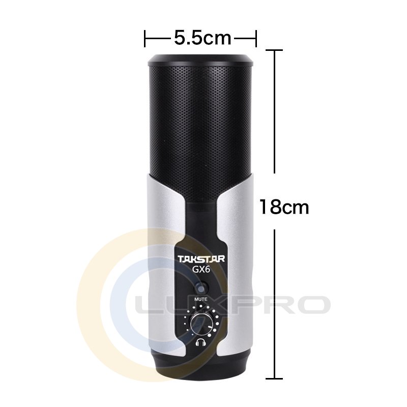 Takstar GX6 USB Microphone - динамический проводной микрофон отличающийся добротной сборкой, лаконичным дизайном и качественным сбалансированным звучанием. В отличие от многих собратьев по классу, оснащен физической ручкой регулировка гейна. Увесистый корпус GX6 – сочетание благородного алюминия и практичного пластика; комплектная стойка изготовлена преимущественно из металла. Примечательно, что упомянутая стойка крепится к микрофону посредством вращаемых шарниров, что позволит подобрать наиболее предпочтительное положение капсюлей относительно источника звука.