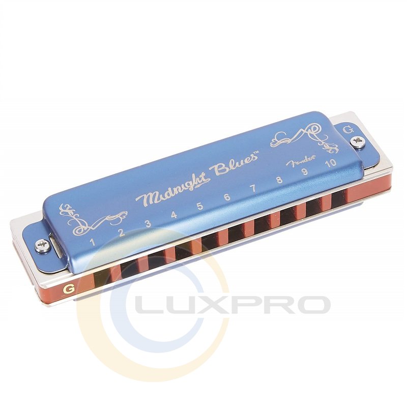HARMONICA MIDNIGHT BLUES G - губная гармошка - надежный выбор для исполнителей на любой сцене. также имеет темно-синюю крышку ограниченного выпуска, которая дополняет его традиционную форму, с долговечной надежностью любого подлинного инструмента Fender.