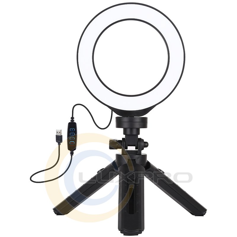 Назначение - для смартфона, Комплектация - кольцевая LED лампа, штатив-трипод, Тип установки - настольный, Максимальный размер телефона - 6.2", Внешний диаметр лампы - 160 мм, Внутренний диаметр лампы - 110 мм, холодный, тёплый, 440 г, черный