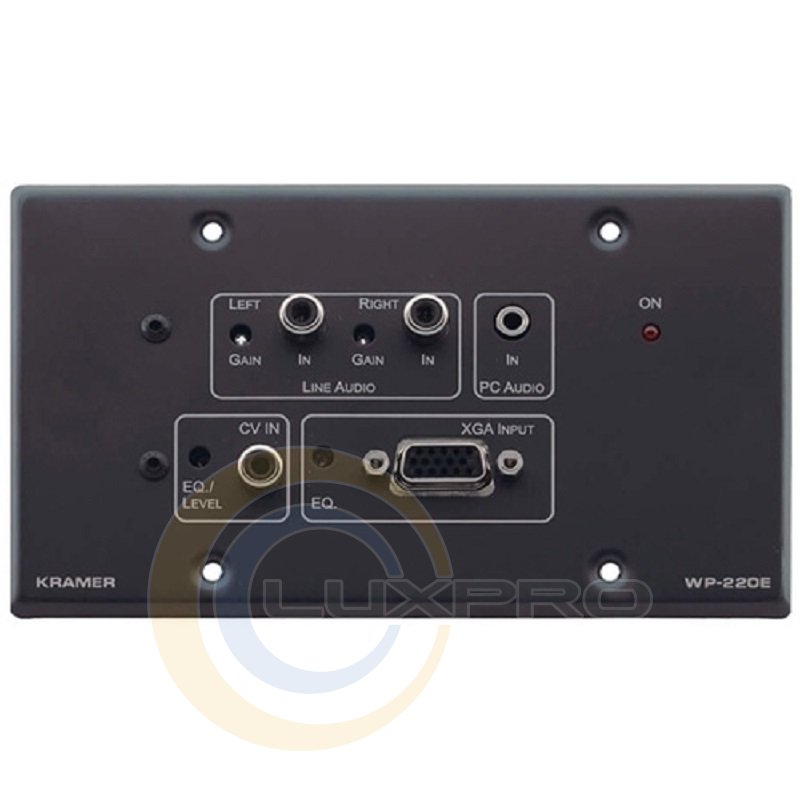 - входы: видеосигнал: 1 вход сигнала RGB (XGA): 0,7 В (75 Ом), строчные и кадровые синхроимпульсы ТТЛ-уровня, разъем HD15F; 1 вход композитного видеосигнала 1 В, 75 Ом, разъем RCA Аудиосигнал: 1 небалансный стереовход компьютерного аудиосигнала (3,5-мм «мини-джек»), 1 небалансный линейный стереовход (разъем RCA);