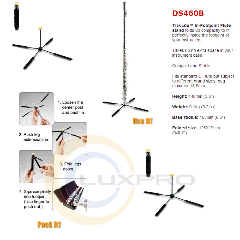 HERCULES DS460B - компактная стойка для флейты, компактно складывается, вписываются в футляр вашего инструмента,не занимает много места, прибор подходит к стандартной флейте.Характеристики: