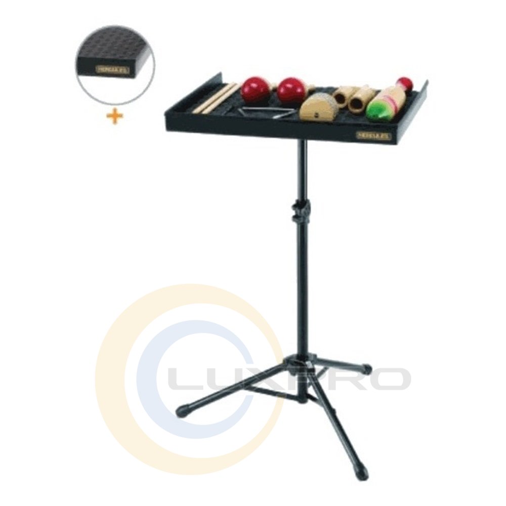 HERCULES DS800B Стойка-столик для перкуссионных инструментов. Быстрая и Бесшумная замена инструмента.Cтойка для перкуссии от компании HERCULES разработана для безопасной поддержки десятков перкуссионных инструментов и аксессуарных элементов. Ее можно приобрести за очень доступную цену. Важно, что эта модель обеспечивает абсолютно бесшумную замену инструмента за счет волнистой губки на пенной основе, размещенной на ее столике. Теперь вы можете сосредоточиться на своей игре и оставить все суеты! Новая DS800B - это наилучший выбор для школьной группы или оркестра!Характеристики: