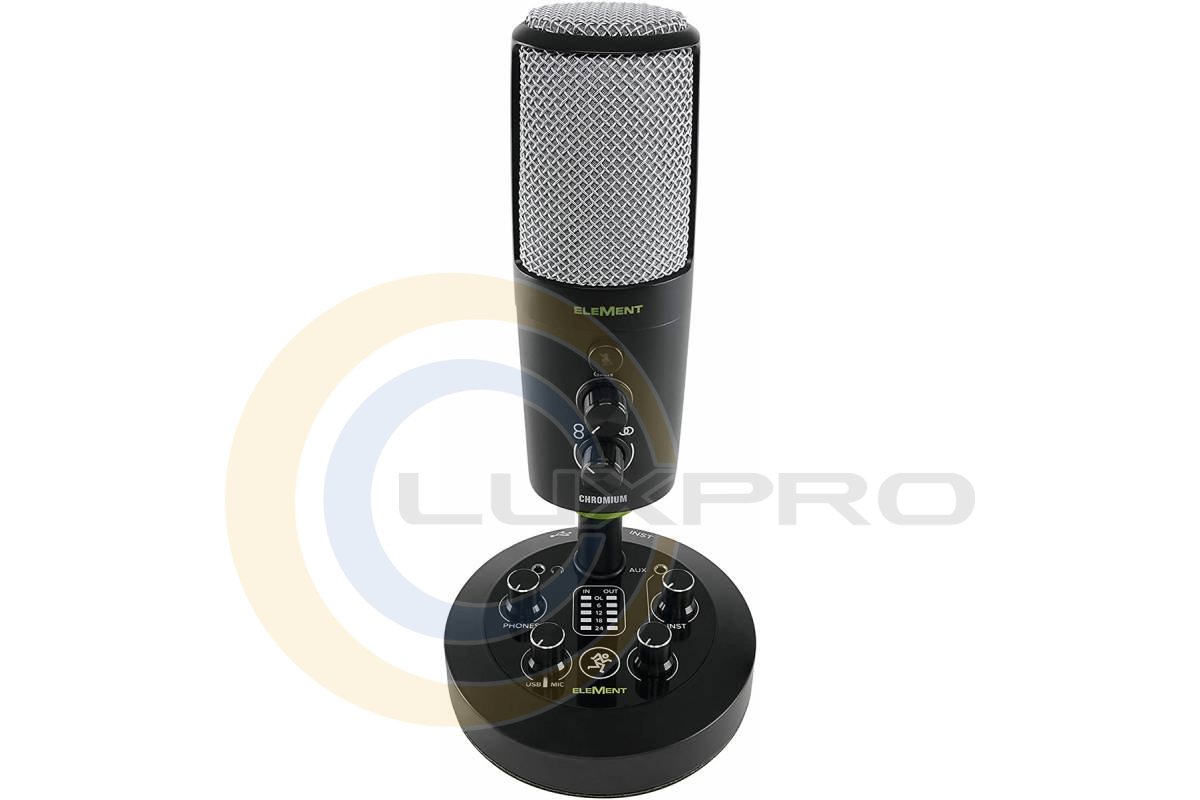 CHROMIUM - микрофон — настоящий зверь для вашей домашней студии вместе с его входами и выходами и элементами управления для различных применений. MACKIE CHROMIUM предлагает чистое звучание с 4 сменными направленностями и легендарной схемой предусилителей Onyx. Вдобавок к этому, вы получаете инструментальный вход 1/4", благодаря которому вы можете микшировать. Хотите поиграть вместе с треком? Подключите все что угодно с выходом Aux 1/8" и слушайте через наушники.
