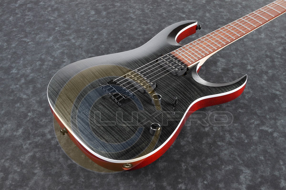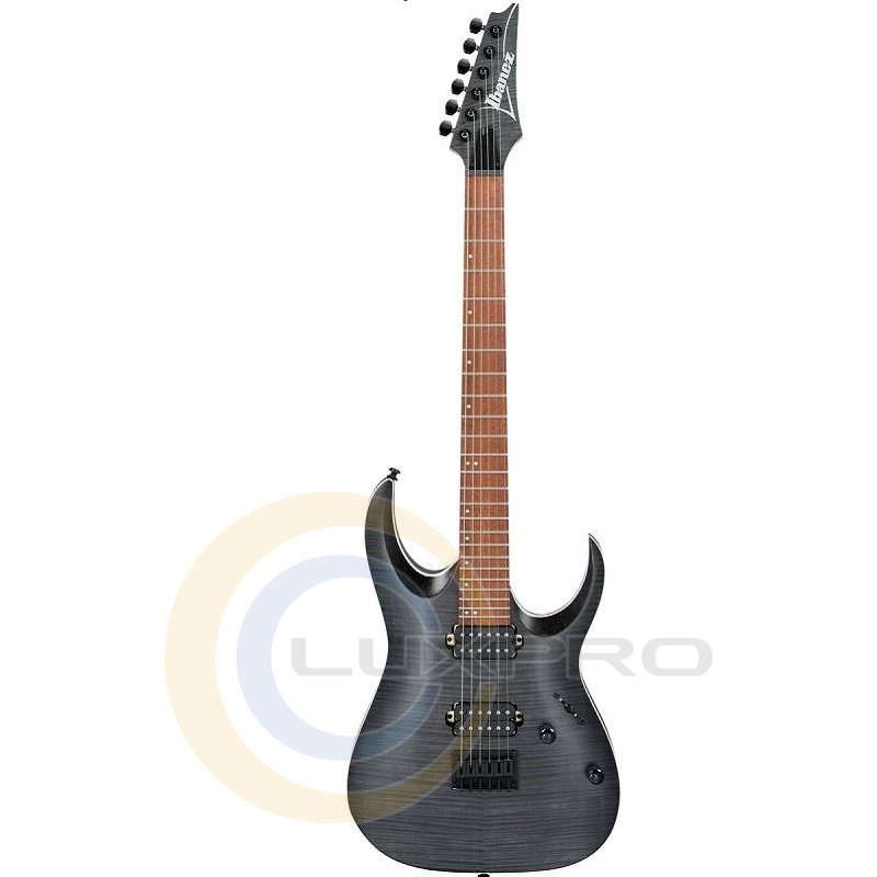IBANEZ RGA42FM TGF - электрогитара из серии RGA. Модель заключена в изящный корпус узнаваемой формы с 2 вырезами. Гитара отличается удобством при игре, обладает мощным плотным звуком, идеально подходящим для тяжелой музыки, рока и металла. Это инструмент прекрасного качества по вполне демократичной цене.Корпус RGA42FM сделан из красного дерева (махагони) с красивым топом из огненного клена. Гриф Wizard III – тонкий, очень удобный, выполнен из клена. Накладка – ятоба, с инкрустацией ладов белыми точками, смещенными к верхней части грифа. Радиус накладки - 400 мм. Фиксированный бридж надежно держит строй. Звукосниматели - 2 мощных пассивных хамбакера Quantum открытого типа c керамическими магнитами. Такие звукосниматели выдают мощные низкие частоты и усиленную середину, четкие и артикулированные верха. Переключатель - 5-позиционный. Для настройки звука предусмотрены регуляторы громкости и тембра.