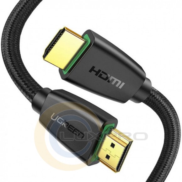 UGREEN HD118 HDMI to HDMI, 5 m, v2.0 UltraHD 4K-3D Braided Black 40412 - кабель имеет два коннектора HDMI, которые подключаются к соответствующим разъемам монитора и источника видео. Выводить изображение и звук можно с компьютера, ноутбука, Blu-ray плеера, игровой консоли и других гаджетов с HDMI-разъемами. Позолоченные контакты обеспечивают стабильный сигнал. Коннекторы соединены проводом в прочной нейлоновой оплетке. Благодаря оплетке провод меньше страдает от заломов и внешних повреждений, поэтому кабель дольше служит.