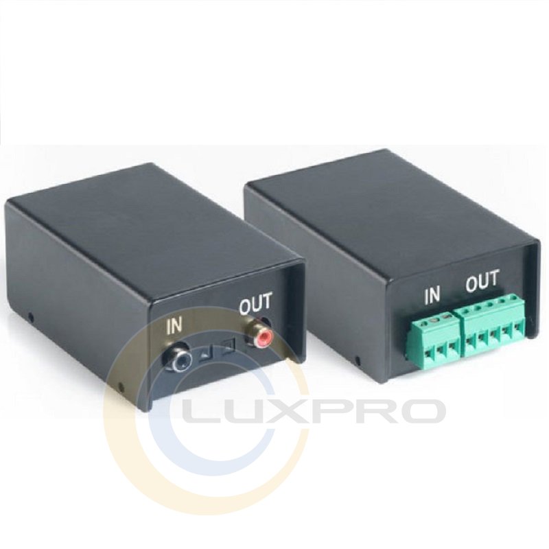 Цифро-аналоговый преобразователь PA MATCHBOX имеет трансформатор с гальванической развязкой и переключатели уровня сигнала. Также позволяет подавать сигнал от акустических систем напряжением 100 В / 70 В на вход Line / Aux усилителя.