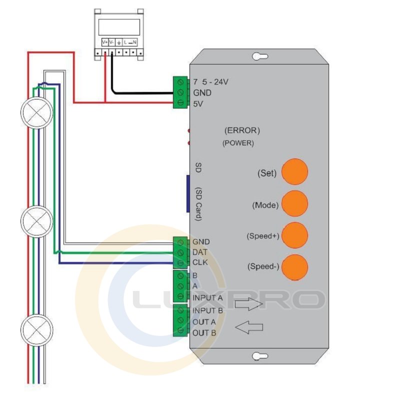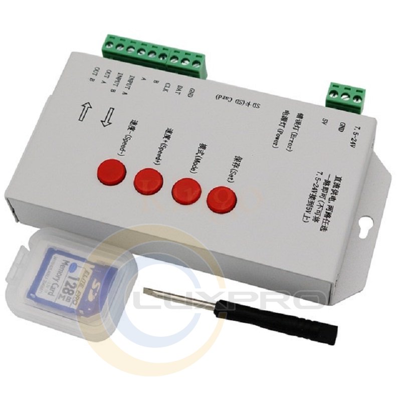 Контроллер RGB T1000S для SD-карты и пикселей, для WS2801, WS2811, WS2812B, LPD6803, светодиодный 2048, 5 ~ 24 В постоянного тока.Характеристики: