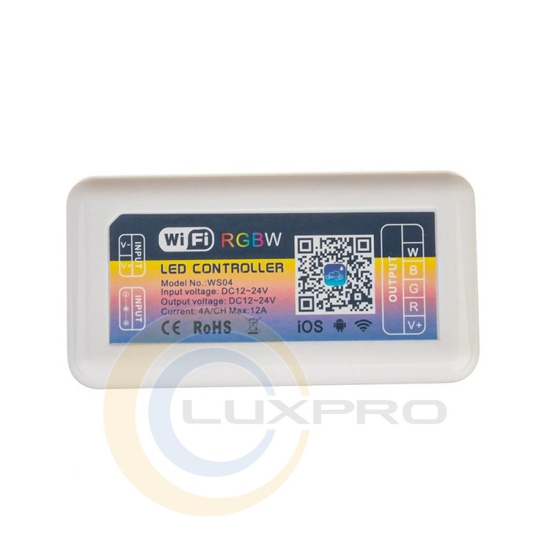 Контроллер RGBW 12А Wi-Fi обладает следующими высокофункциональными опциями: включение/выключение, регулирование яркости, установка какого-либо цвета, установка системы активности (переливание, мерцание, свечение) и регулирование скорости работы режима. Благодаря динамическим и постоянным режимам, с поддержкой данного контроллера, вы сможете сформировать очень много цветовых композиций света. 15 встроенных световых программ всегда помогут организовать настоящее светотехническое шоу!
