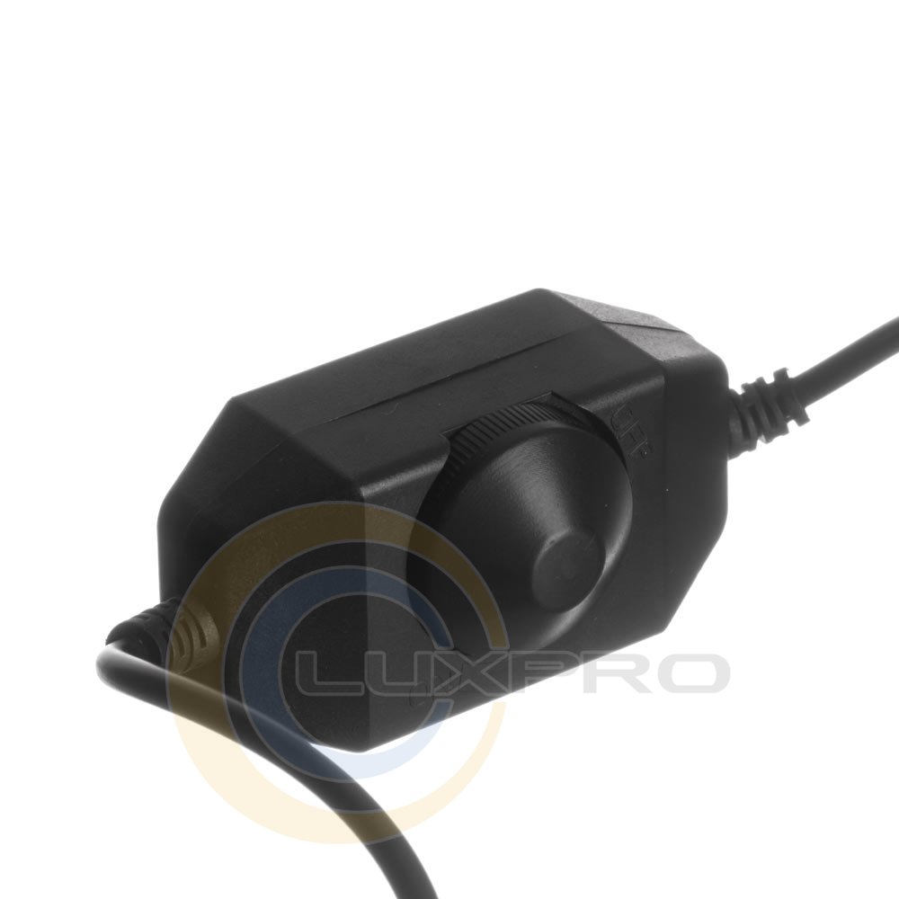 Диммер одноканальный 2А черный предназначен для регулировки яркости свечения монохромной светодиодной ленты и других осветительных приборов. Данный диммер имеет небольшие габаритные размеры и оснащён поворотным регулятором яркости на корпусе устройства.