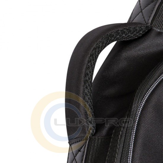 Он имеет внешнюю ткань из плотной кордуры, подкладку из пены 13 мм, два внешних кармана для аксессуаров, качественные молнии, ручку для переноски, пару петель для вешалки, а также пару удобных мягких ремней для транспортировки чехла за спиной как рюкзак.Характеристики: