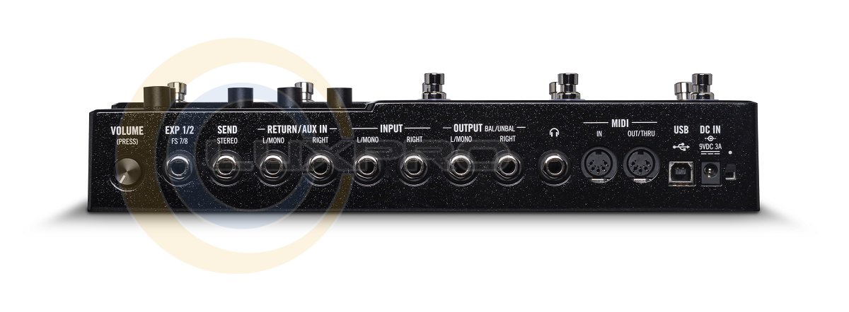 - интерфейсы: стерео петля эффектов (моно/стерео TRS посыл + стерео возврат), MIDI In/Out, USB, Exp 1/4" TRS Jack;