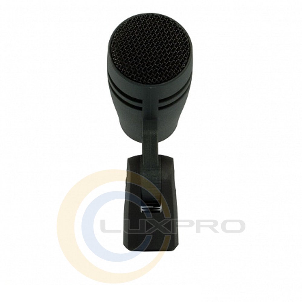Динамический микрофон с креплением типа Clamp для озвучивания с близкой дистанции барабанов и медных духовых инструментов. Микрофон без усилий справляется с очень высоким уровнем звукового давления, что вместе с низким уровнем искажений и низким уровнем собственного шума даёт качество звука, сопоставимое с качеством студийного конденсаторного микрофона.
