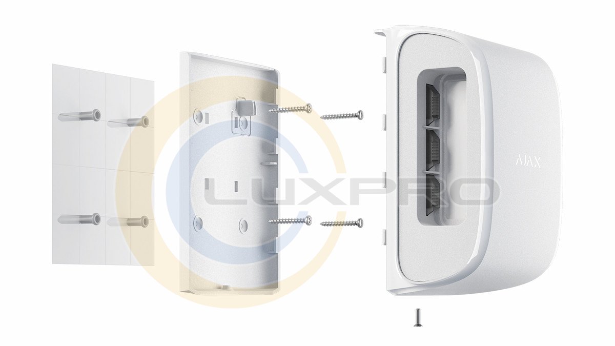 Датчик легко устанавливается и настраивается без специальных знаний: монтаж на крепления SmartBracket удобен и не повредит ремонт, подключение к центральному блоку проводится через мобильное приложение буквально в один клик. Устройство готово к работе из коробки, даже батарея установлена. Датчик работает только с Hub Plus, Hub 2, Hub 2 Plus и ретранслятором ReX. Подключение к Hub и модулям интеграции ocBridge Plus и uartBridge не предусмотрено!