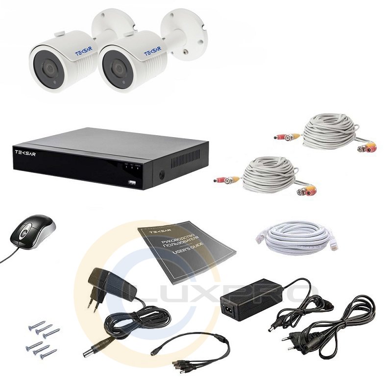- комплект из 2-х AHD камер высокого разрешения (5Мп), гибридного видеорегистратора и всего, что необходимо для самостоятельной установки;