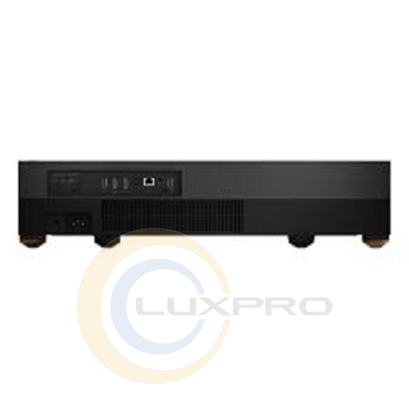 С расстояния от 16 до 38 см до стены проектор может создать изображение размером от 85 до 120 дюймов по диагонали. При заявленной яркости в 3500 люмен модель позволяет обойтись без полного затемнения – хотя с ним будет еще лучше, а ресурс источника света составляет 30 000 часов. Optoma UHZ65UST также поддерживает разрешение 4К и формат HDR10 благодаря чипу DMD 0.47'' и технологии удвоения пикселей. Цветовое колесо имеет 8 сегментов, что помогает сглаживать эффект радуги. На передней стенке корпуса установлен саундбар с четырьмя динамиками, разработанный фирмой NuForce.