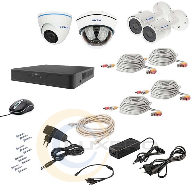 - комплект видеонаблюдения состоит из 4-х камер, сетевого видеорегистратора, кабелей и монтажного комплекта;
