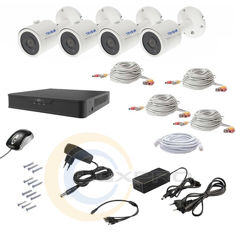 - комплект видеонаблюдения состоит из 4-х камер, сетевого видеорегистратора, кабелей и монтажного комплекта;