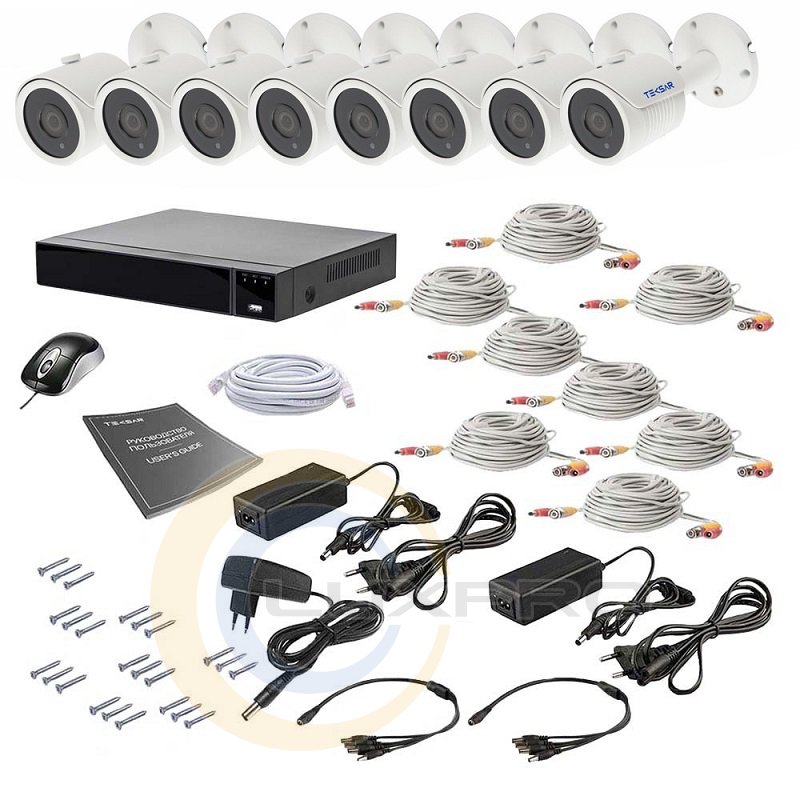 - комплект из 8-ми AHD камер высокого разрешения (2Мп), гибридного видеорегистратора и всего, что необходимо для самостоятельной установки;