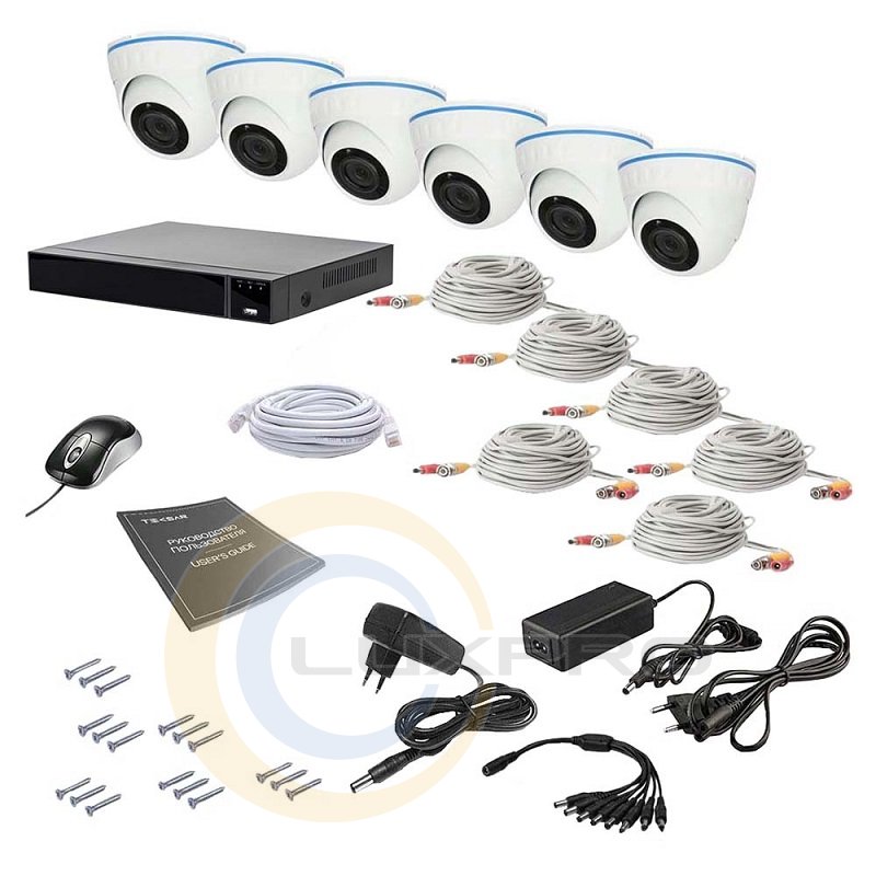 - комплект из 6-ти AHD камер высокого разрешения (2Мп), гибридного видеорегистратора и всего, что необходимо для самостоятельной установки;