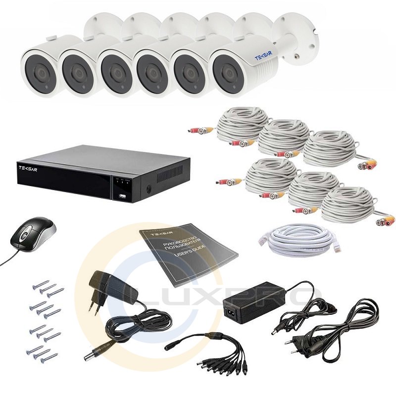 - комплект из 6-ти AHD камер высокого разрешения (2Мп), гибридного видеорегистратора и всего, что необходимо для самостоятельной установки;