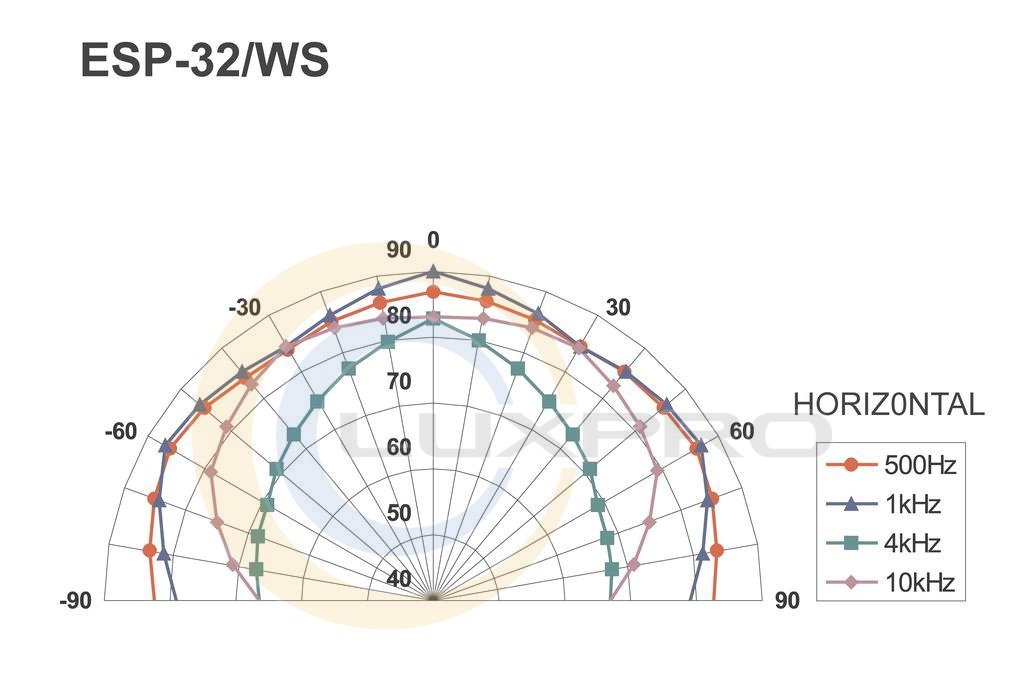 - Линейная технология 100 В, 2-полосная версия с купольным твитером (подвижная с ESP-17 / WS, ESP-22 / WS и ESP-32 / WS).