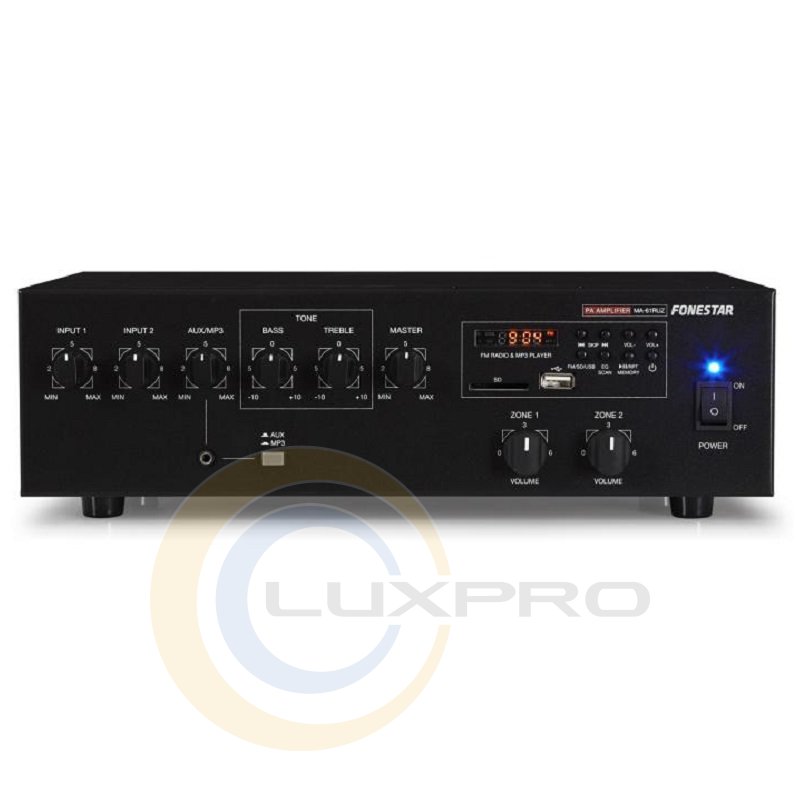 Усилитель MA-61RUZ предназначенный для подключения трансляционных акустическим систем с целью озучивания музыкального и речевого оповещения.