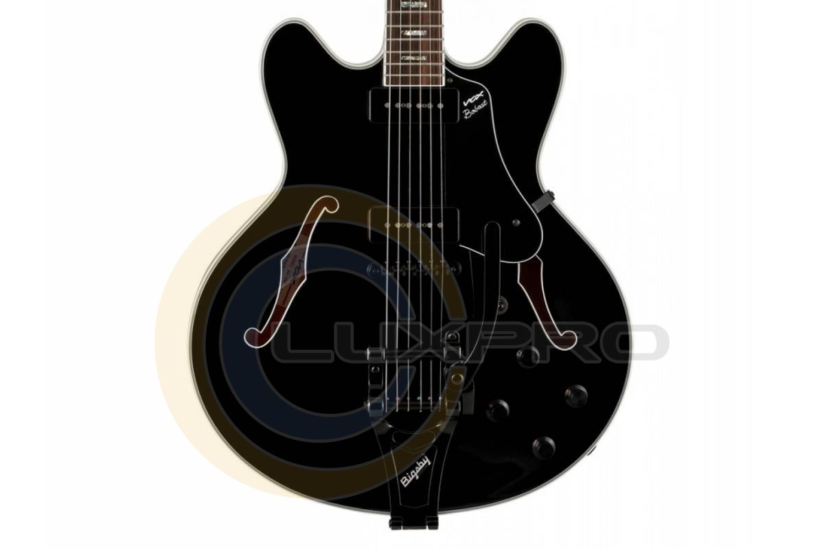 Полуполая структура деки использует облегченный центроблок, таким образом улучшая сустейн и подавляя обратную связь даже на высокой громкости. Полуакустическая гитара VOX BC-V90B BK оснащена легкими колками Grover открытого типа, которые лучше передают колебания струн, что упрощает настройку инструмента. Они гарантируют стабильный строй даже при длительной игре.