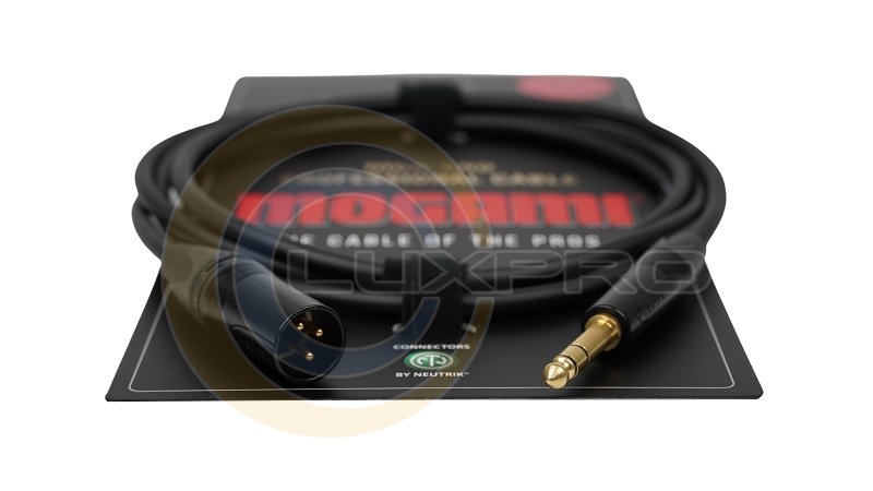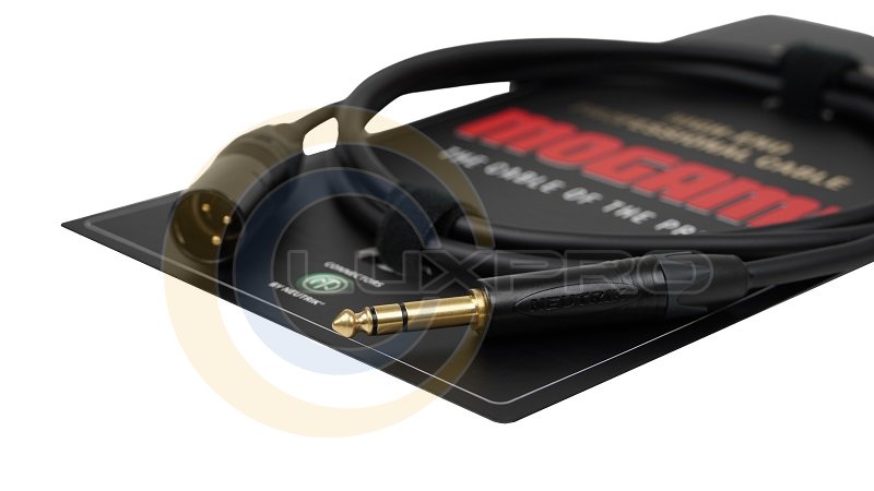 В основе - микрофонный кабель Mogami W2582. Разъемы с позолоченными контактами Neutrik NC3MXX-B и Neutrik NP3X-B. Длина - 2м.