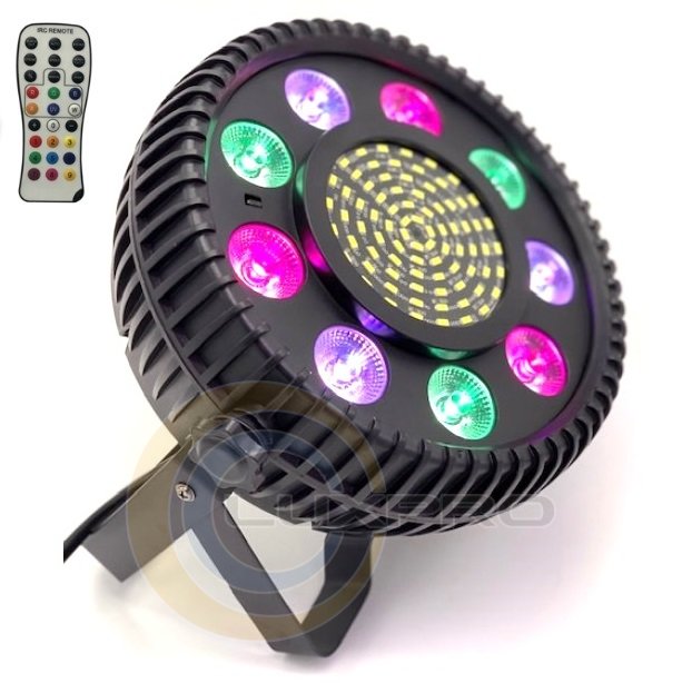 Led StrobePar 981 - это прожектор, который прекрасно подойдет для различных концертных мероприятий или ночных клубов. Данная модель включает в себя стробоскоп и заливочной свет сразу.За заливочной свет отвечают девять разноцветных светодиодов с мощностью по 15 Вт. Стробоскоп изготовлена из 81 SMD диодом.Для легкости в управлении производителем предусмотрено несколько функций: автоматический режим, в режиме ведущий/ведомый, с помощью пульта дистанционного управления и через протокол DMX.Модель выполнена из прочных и надежных материалов и поставляется в комплекте с креплением.Характеристики: