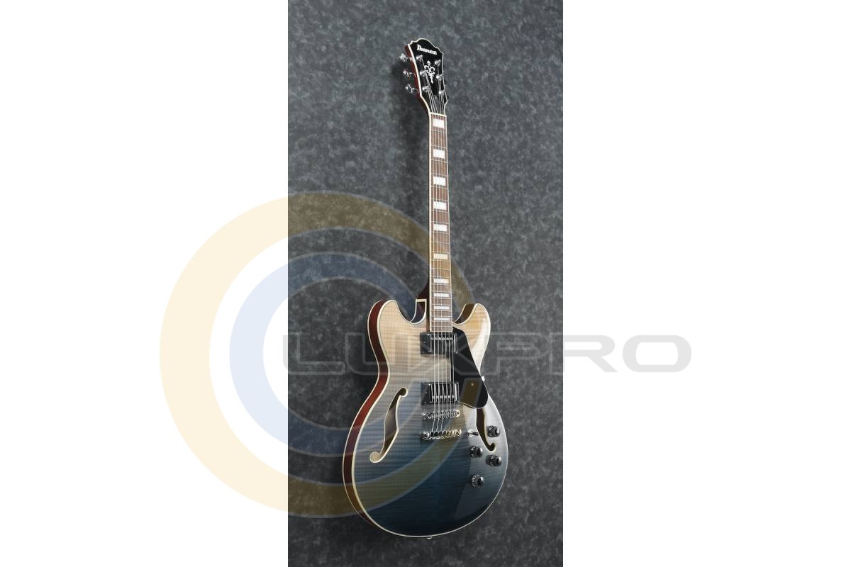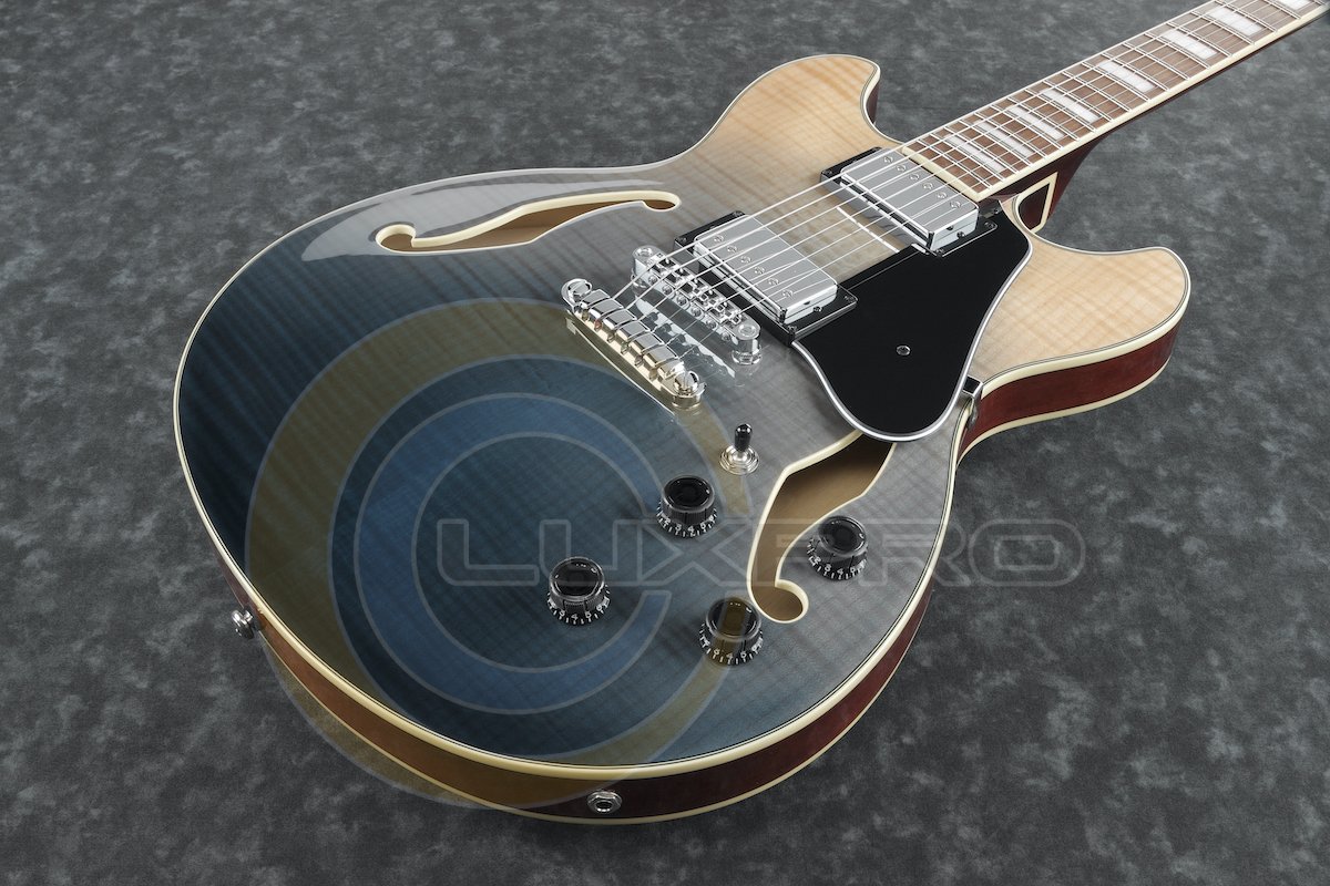 AS73FM-TIF - гитара. Благодаря топу из «огненного» клена и деке из липы, она демонстрирует идеальное сочетание привлекательного внешнего вида и приятного звучания. Подключитесь в усилитель и получите мягкие, винтажные текстуры двух хамбакеров Classic Elite. Удобные гриф из ньято и ореховая накладка способствуют несравненным игровым возможностям. Компания Ibanez не поскупилась и на качестве фурнитуры: бридж Gibraltar Performer и струнодержатель Quik Change III способствуют, как надежной интонации, так и молниеносной замене струн. AS73FM-TIF украшена изящной инкрустацией в виде акриловых блоков на накладке и привлекательной хромированной фурнитурой.