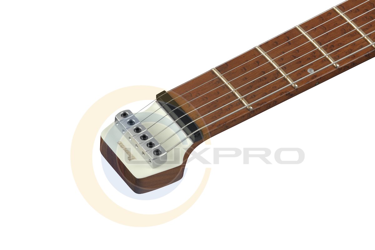 ICHI10-VWM - электрогитара представлена в матовом цвете Vintage White Green Matte с накладкой на грифе из клена Roasted Birds Eye Maple. Эта специальная модель была создана для интернет-феномена Ичика Нито, используя основу формулы безголовых инструментов Ibanez Q Series, чтобы создать инструмент, достойный головокружительной техники художника. Были установлены три звукоснимателя R1 Single-Coil, которые идеально способствуют прозрачной тональной чистоте Ichika и его перкуссионно-ритмическому чутью. Переключение Dyna-MIX8 с помощью Alter Switch дополнительно открывает звуковой ландшафт, позволяя использовать 8 различных звуковых вариаций, включая тоны хамбакера.
