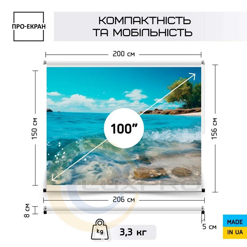 Рулонний екран для проектора 200х150 см (4:3), 100 дюймов