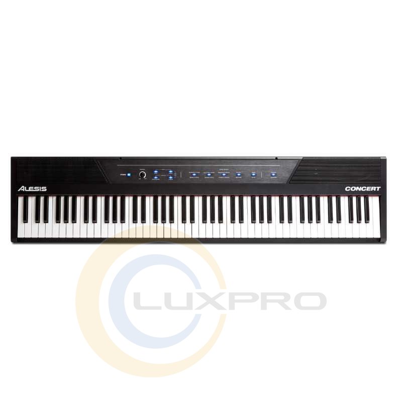 У Alesis Concert есть невероятно полезная функция под названием Lesson Mode (Режим урока). Эта функция делит 88 клавиш на две зоны с одинаковой высотой звука и тембром. Это позволяет как ученику, так и преподавателю легко наблюдать друг за другом и играть вместе, без необходимости делать это по очереди. Concert также оснащен выходом для наушников ¼” (6,35 мм), который отключает внутренние динамики для удобных тихих занятий.