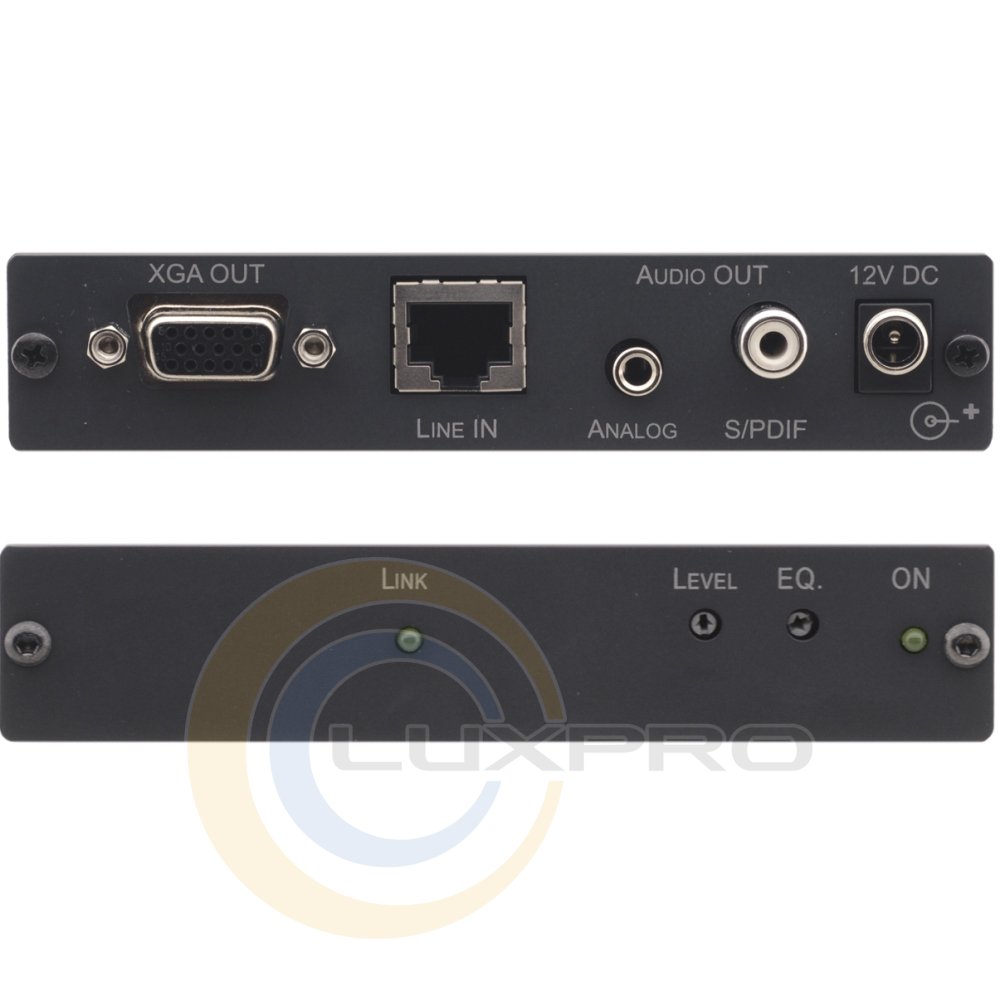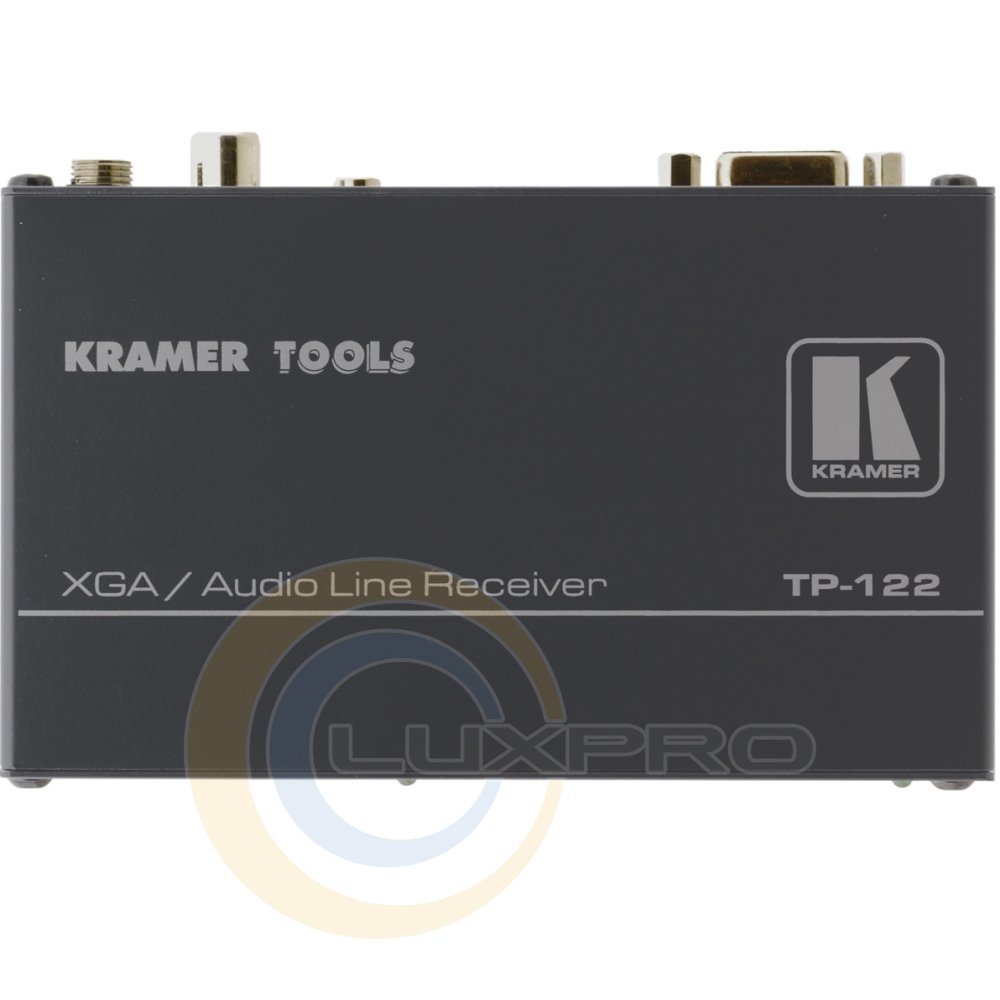 TP-122 - приемник может получать питание от передатчика или сам питать его по передающему кабелю. Для сигналов YUV (Y/Pb/Pr, Y/Cb/Cr) рекомендуется использовать переходные кабели VGA-3RCA. TP-122 имеет регуляторы компенсации АЧХ и уровня сигнала, выполнен в корпусе Kramer TOOLS и питается постоянным напряжением 12 В.