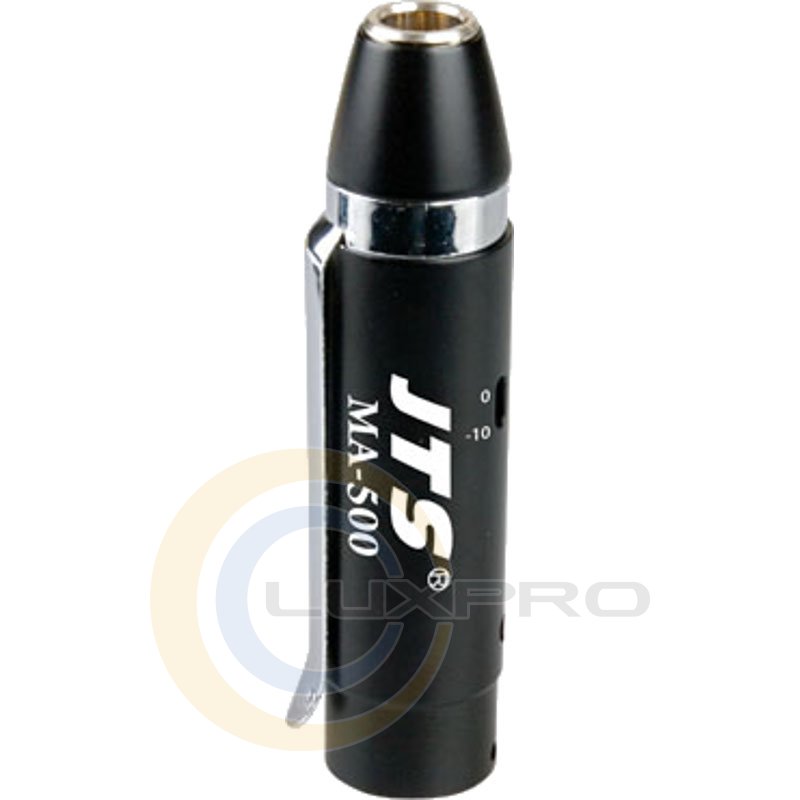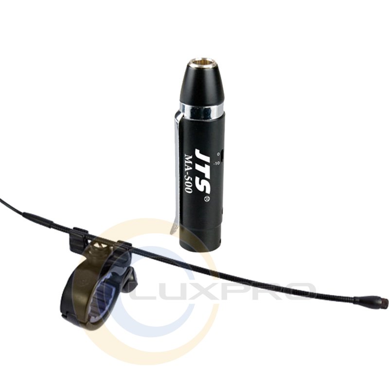 JTS CX-500F/MA-500 - конденсаторный микрофон с широким частотным диапазоном, с капсулем, позолоченным изнутри и снаружи. Возможно использование с любыми типами духовых и струнных инструментов. Регулируемое крепление позволяет прикреплять передатчик к инструментам любого размера, а двойной мягкий зажим предохраняет инструмент от царапин. Гибкая мини-«гусиная шея» позволяет выбрать оптимальное расположение микрофона, чтобы при передаче сигнала не были слышны дыхание музыканта и щелчки инструмента.