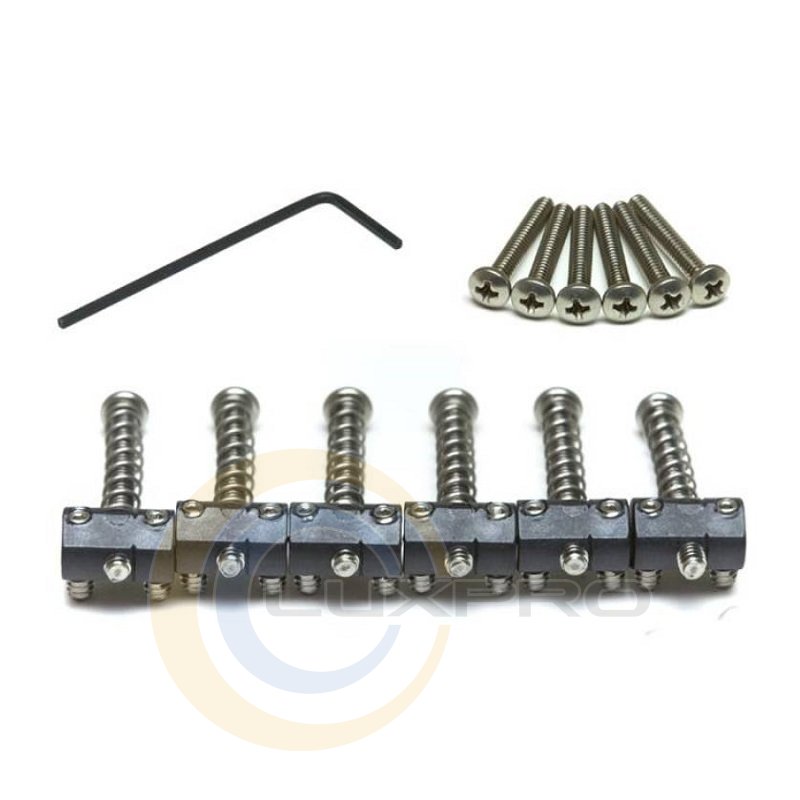 GRAPH TECH PS-8166-00 String Saver Saddle Barrel I.O.S. 6-Pce Tele Style (6 Pcs) – набор для модернизации или замены седел для электрогитар в винтажном стиле. Они полностью регулируются и значительно уменьшают разрыв струны и улучшают настройку вашей гитары.