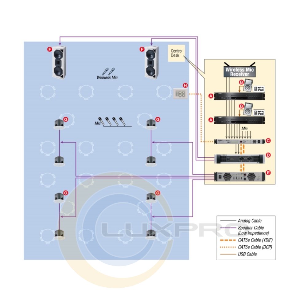 - Эффекты: Room Delay, Room EQ, Speaker Processor, X-Over (1way,2way), Delay, 6-band PEQ, Limiter, Priority Ducking, Ambient Noise Compensator;